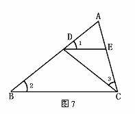9.如图7,若∠1=∠2=∠3,则图中相似三角形共有( )