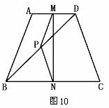2.如图10,梯形ABCD中,AD∥BC,AB=CD,M、N、P分别为AD、BC、BD的中点,若∠ABD=20°,∠BDC=70°,求∠NMP的度数.