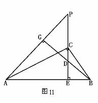 3.如图11,CE是Rt△ABC斜边上的高,在EC的延长线上取一点P,连AP,作BG⊥AP于G,交CE于D,求证:CE是ED和EP的比例中项.