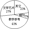 7、如右图是某学校图书馆各类藏书的统计图,其中期刊840册,根据图形回答下列问题: