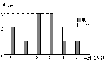 ⑵在被抽查的学生中,甲班学生参加课外活动的平均次数为 ;乙班学生参加课外活动的平均次数为 。