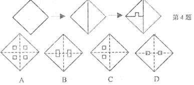 8、一张正方形纸片经过两次对折,并在如图位置上剪去一个小正方形,打开后是( )