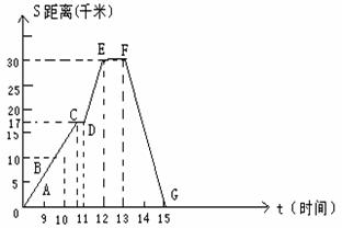 1、如图的折线表示一辆自行车离家的距离与时间的关系,骑车者9:00离开家,15:00回家,根据图象回答: