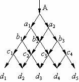 一条信息可以通过如图所示的网络由上(A点)往下向各站传送,例如信息b2可由经a1的站点送达,也可由经a2的站点送达,共有两条途径传送,则信息由A点到d3的不同途径共有( )