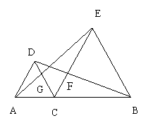 25. 如图:已知点C在线段AB上,向AB的同侧分别作等边三角形 ΔACD、ΔCBE,连接AE交CD于G,连接BD交CE于F。