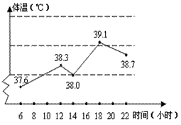 化图:根据统计图回答下列问题: (10分) ⑴病人的最高体温是达多少? ⑵什么时间体温升得最快? ⑶如果你是护士,你想对病人