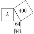 7、如图1,64、400分别为所在正方形的面积,则图中字母所代表的正方形面积是 。