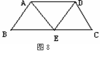 26、如图8,等腰梯形ABCD中,E是BC的中点,连接AE、DE,AE=DE吗?请说明理由。