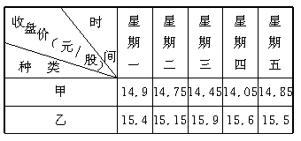 22.某周甲、乙两种股票的收盘价(每天结束交易时的价格)如下表: