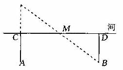 7.如图,牧童在A处放牛,其家在月处,A、B到河岸的距离分别为AC和BD,且AC=BD,若点A到河岸CD的中点的距离为500米,则牧童从A处把牛牵到河边饮水再回家,最短距离是( )米
