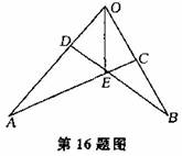 16. OE是∠AOB的平分线, BD⊥OA于D,AC⊥BO于C,则关于直线OE对称的三角形共有____对.