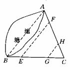 四、(6分)小珍想出了一个测量池塘宽度AB的方法:先分别从池塘的两端A、B引两条直线AC、BC相交于点C,然后在BC上取两点E、G,使BE=CG,再分别过E、G作EF∥GH∥AB,交AC于F、H。测量出EF=10 m,GH=4 m(如图),于是小珍就得出了结论:池塘的宽AB为14 m 。你认为她说的对吗?为什么?