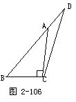命题5 在△ABC中,∠C=90°,D是斜边AB上的任一外分点(图2-106),则有