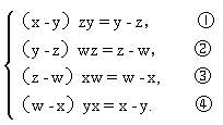 ①×②×③×④,并约去(x-y)(y-z)(z-w)(w-x)(利用x,y,z,w互不相等)就得到