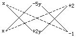 上述因式分解的过程,实施了两次十字相乘法.如果把这两个步骤中的十字相乘图合并在一起,可得到下图: