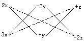 (2)把常数项f分解成两个因式填在第三列上,要求第二、第三列构成的十字交叉之积的和等于原式中的ey,第一、第三列构成的十字交叉之积的和等于原式中的dx.