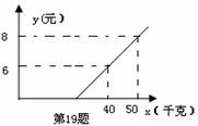 19.某长途汽车客运公司规定旅客可免费随身携带一定质量的行李,如果超过规定的质量,则需购买行李票.行李费用y(元)是行李质量x(千克)的一次函数,其图像如图所示.旅客最多可免费携带行李的质量是 千克。