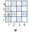 国际象棋、中国象棋和围棋号称世界三大棋种. 国际象棋中的“皇后”的威力可比中国象棋中的“车”大得多:“皇后”不仅能控制她所在的行与列中的每一个小方格,而且还能控制“斜”方向的两条直线上的每一个小方格.如图甲是一个4×4的小方格棋盘,图中的“皇后Q”能控制图中虚线所经过的每一个小方格.
