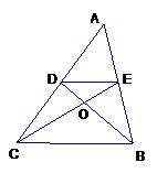 18、如图3,DE为△ABC的中位线,BE、CD交于O,若△DOE的面积为1,