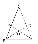 如图,在△ABC中,BD、CE相交于点O,从条件(1)OB=OC,(2)∠OBE=∠OCD,(3)BE=CD,中选出两个条件,证明△ABC为等腰三角形。
