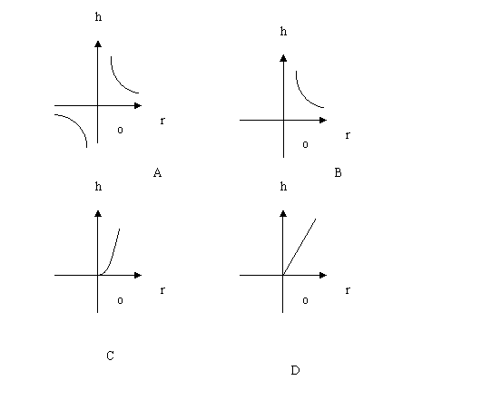 ,若圆柱底面积半径为r(cm),高线为h(cm),则h关于r的函数的图象大致是( )
