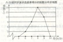 如图是八(5)班演讲选拔赛得分情况的频数分布折线图,则分布在折线图两端的虚设组的范围分别是