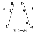 18、已知:如图2-84,∠AEH=130°,∠EFD=50°,∠SMB=120°.求∠DNG的度数.
