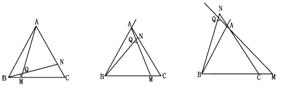 16、在△ABC中,∠C=80°,∠A的平分线和∠B的外角平分线相交于O,则∠AOB= 。