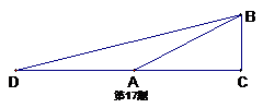 17、如图,在ΔABC中,∠C=900,延长CA至D,使AD=AB,∠BAC=300,则由图可得cot150的值是( )
