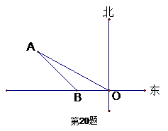 20、如图,某轮船在点O处测得一个小岛上的电视塔A在北偏西600的方向,船向西航行20海里到达B处,测得电视塔A在船的西北方向,若要轮船离电视塔最近,则还需向西航行( )