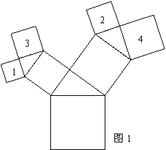 6、如图1,已知顶上四个小正方形面积分别为1、3、2、4,则最下一个大正方形的面