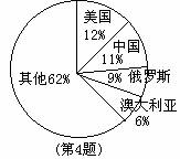4.如图是表示第28届奥运会金牌分布的扇形统计图,由扇形统计图可知,美国的金牌数约占金牌总数的 。已知中国获得金牌32枚,由此估计美国比中国多 枚。