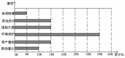 15.如图是某晚报“百姓热线”一周内接到热线电话的条形统计图,其中有关环境保护问题的电话最多,共70个。请你另设计一种统计图来描述一周内“百姓热线”情况?