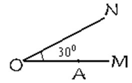 2、两条公路OM、ON相交成300角,沿公路OM方向80米A处有一所小学(如图),当拖拉机沿ON方向行驶时,路旁50米以内受到噪音的影响,已知拖拉机的速度为18千米/时,问该校是否受到噪音影响?若受影响,则影响时间为多少?若不受影响,说明理由。(12分)