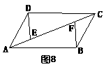 3.已知:如图8,AB=CD,BC=DA,E、F为AC上的两点,且AE=CF。求证:BF∥DE