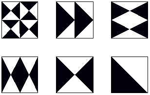 例2.现有如图所示的六种瓷砖,请用其中的4块或6块瓷砖(准许使用相同的),设计出美丽的图案.