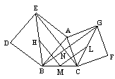 如图, 以△ABC的边AB、AC分别向形外作正方形ABDE和正方形ACFG, H、L分别为 BE、CG的中点. M为BC的中点.
