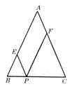19.(4分)小明和小东经常在一块等腰三角形的草坪上玩耍,一天他们发现了一个有趣的现象:如图,草坪为等腰三角形ABC,AB=AC,他们两人同在BC边上一点P,然后小明沿AC平行线PE(点E在AB上)、EA走向A处,小东沿BA的平行线PF(F点在AC上)、FA走向A处,当他们两个步行速度一样时,则同时到达A点.并且在BC边上不断改变P点位置,在步行速度一定时,他们到达A处的时间也完全一样,你知道为什么吗?说说你的理由.