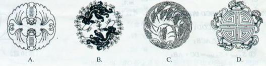 9.观察下列中国传统工艺品的花纹,其中轴对称图形是 ( )
