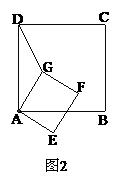 (2) 若将正方形AEFG绕点A按顺时针方向旋转, 连结DG,在旋转的过程中,你能否找到一条线段的长与线段DG的长始终相等.并以图2为例说明理由.