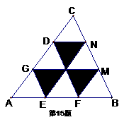 15、如图,在ΔABC中,AB=30,BC=24,CA=27, AE=EF=FB,EG∥FD∥BC,FM∥EN∥AC,则图中阴影部分的三个三角形的周长之和为------( )