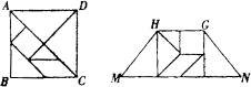 5、七巧板是我们祖先创造的一种智力玩具,它来源于勾股法。如图(1),整幅七巧板是由正方形ABCD分割成七小块(其中:五块等腰直角三角形、一块正方形和一块平行四边形)组成。如图(2)是由七巧板拼成的一个梯形,若正方形ABCD的边长为12cm,则梯形MNGH的周长是___________cm。(结果保留根号)(2002年福建宁德)