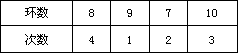 10、某射击选手在10次射击中的成绩如下表: