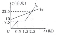 32、(7分)如图:L甲、L乙分别表示甲走路与乙骑自行车(在同一条路上)行走路程y(4米)与时间x(时)之间的关系,观察图象,并回答下列问题。