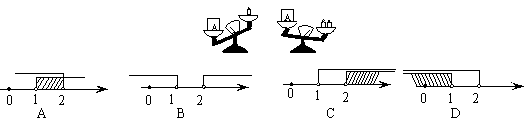 11、如图,天平右盘中的每个砝码的质量都是1g,则物体A的质量m(g)的取值范围,在数轴上可表示为 ( )