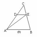 11.如图9,ΔABC中,DE∥BC,AD∶DB=2∶3,则SΔADE∶SΔABE=___________.