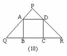 12.如图10,正方形ABCD内接于等腰ΔPQR,∠P=900,则PA∶AQ=__________.