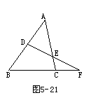 7.已知:如图5-21,△ABC中,D、E分别在AB、AC上,且AD=AE,连结DE并延长,交BC延长线于F,