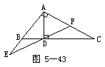34.已知:如图5-43,△ABC中,∠BAC=90°,AD⊥BC于D,E是AC中点,ED的延长线交AB的延长线于F