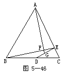 38.已知:如图5-46,在△ABC中AB=AC,D为BC中点,DE⊥AC于E,G为DE中点,AG、BE交于点F